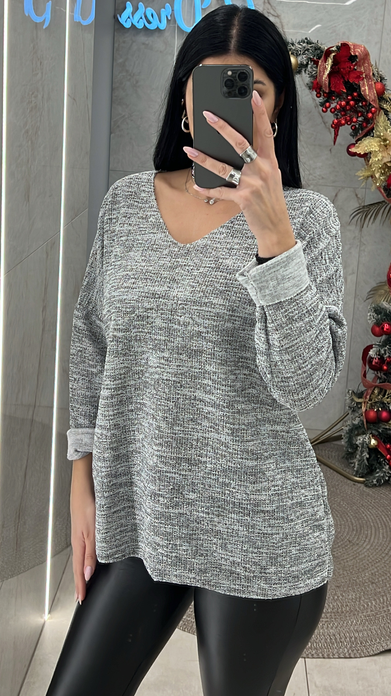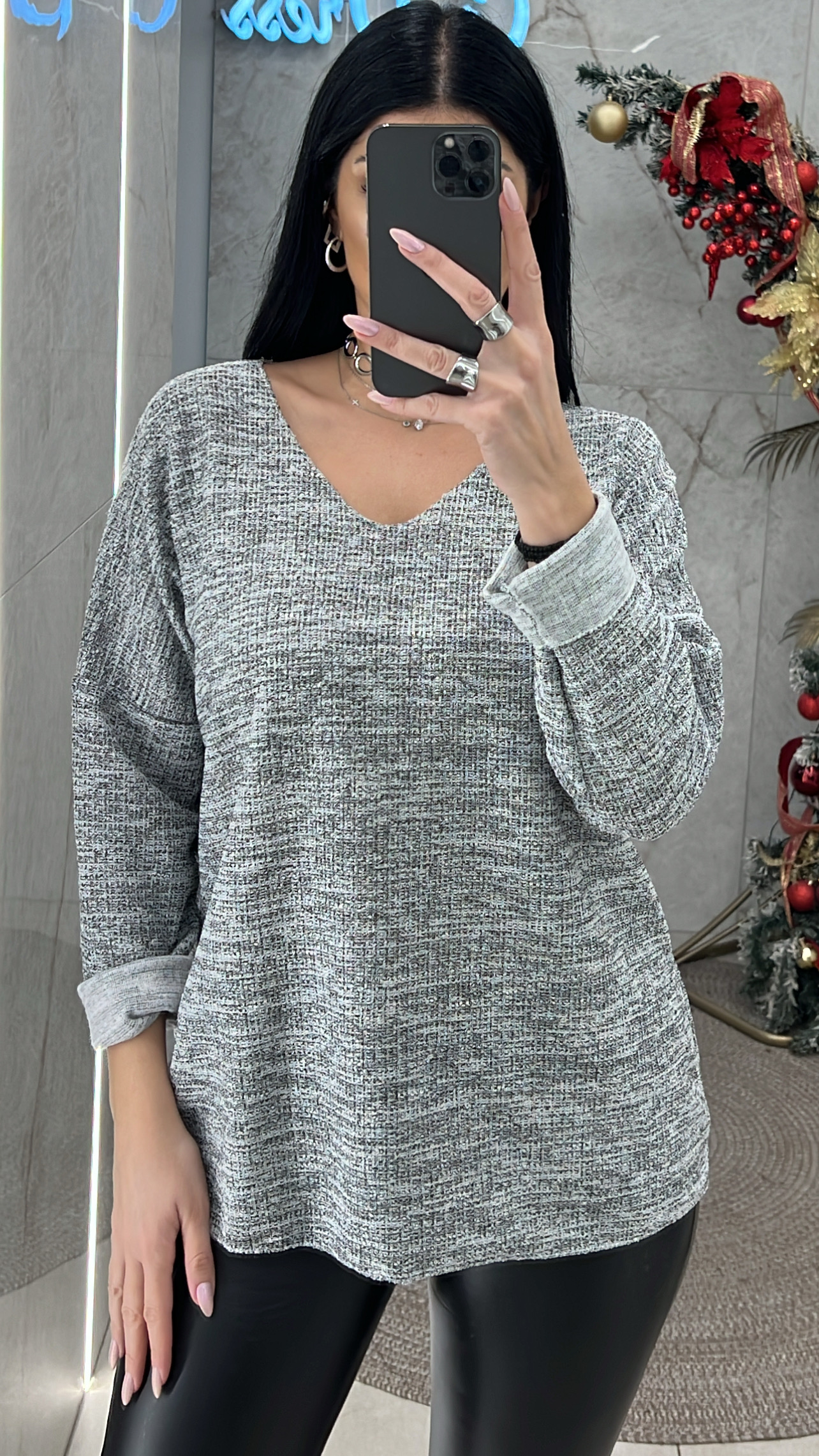 Μπλούζα Πλεκτή με ασημοκλωστή 12159/Γκρι ανοιχτό