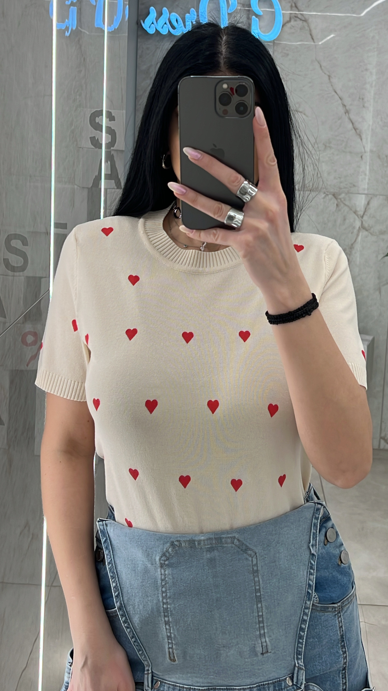 Μπλούζα πλεκτή κοντομάνικι με σχέδιο καρδιές .