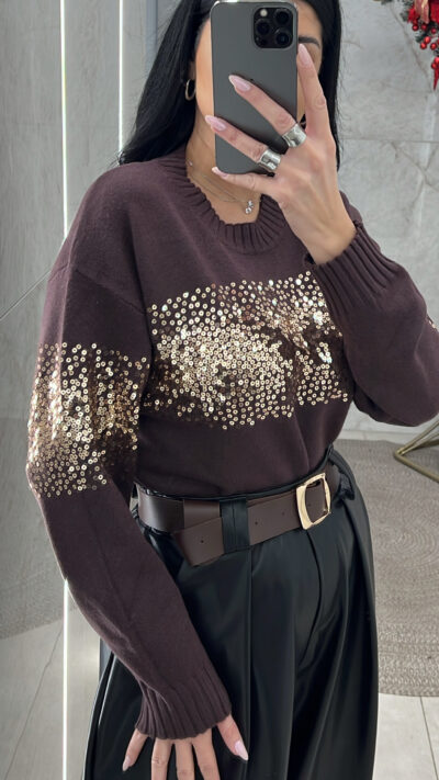 Μπλούζα Πλεκτή με Πούλιες 9126/Καφέ