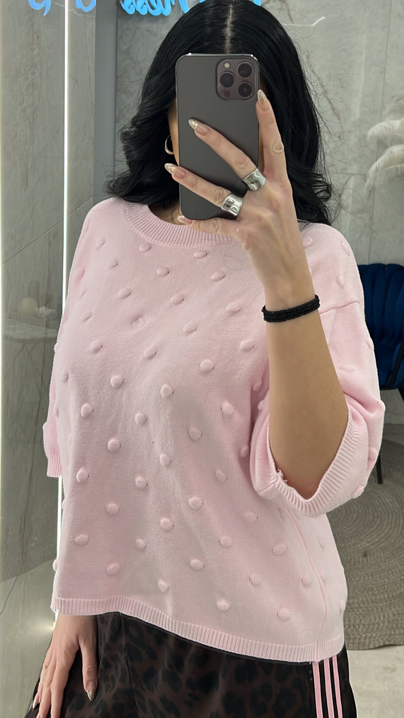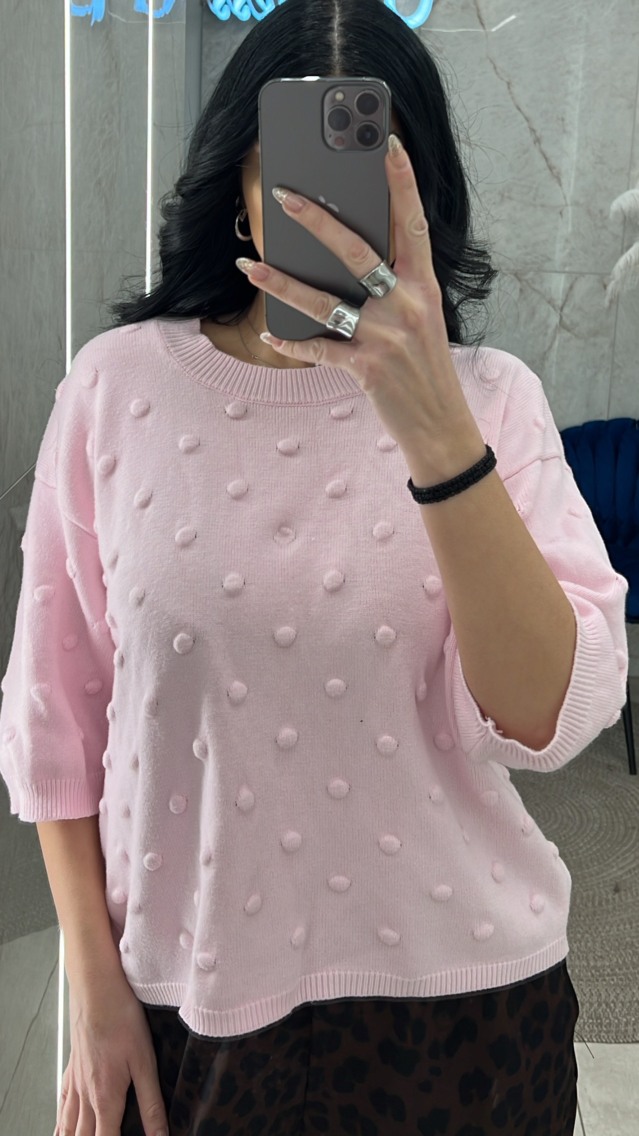 Μπλούζα πλεκτή με σχέδιο και μανίκι 3/4