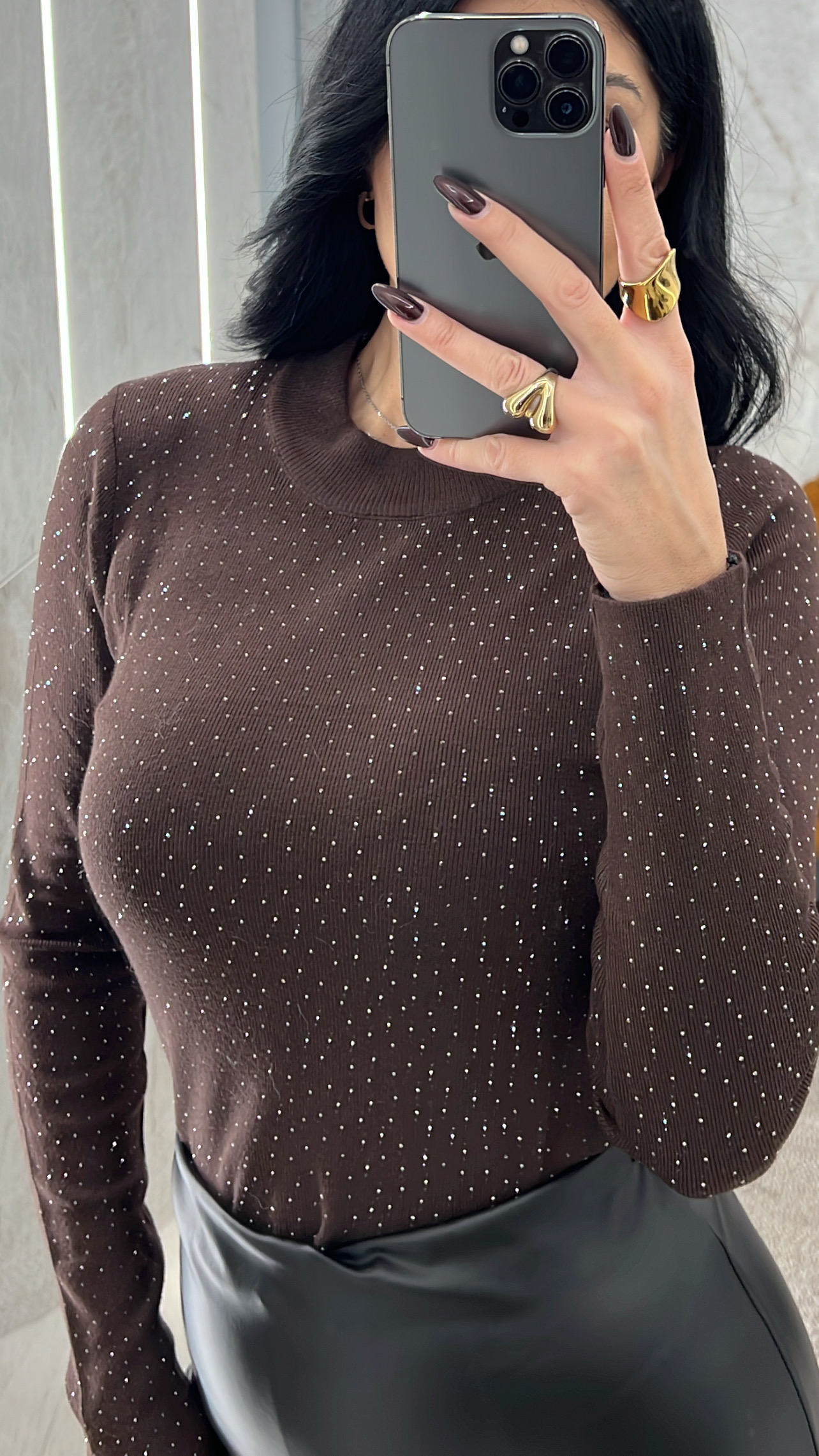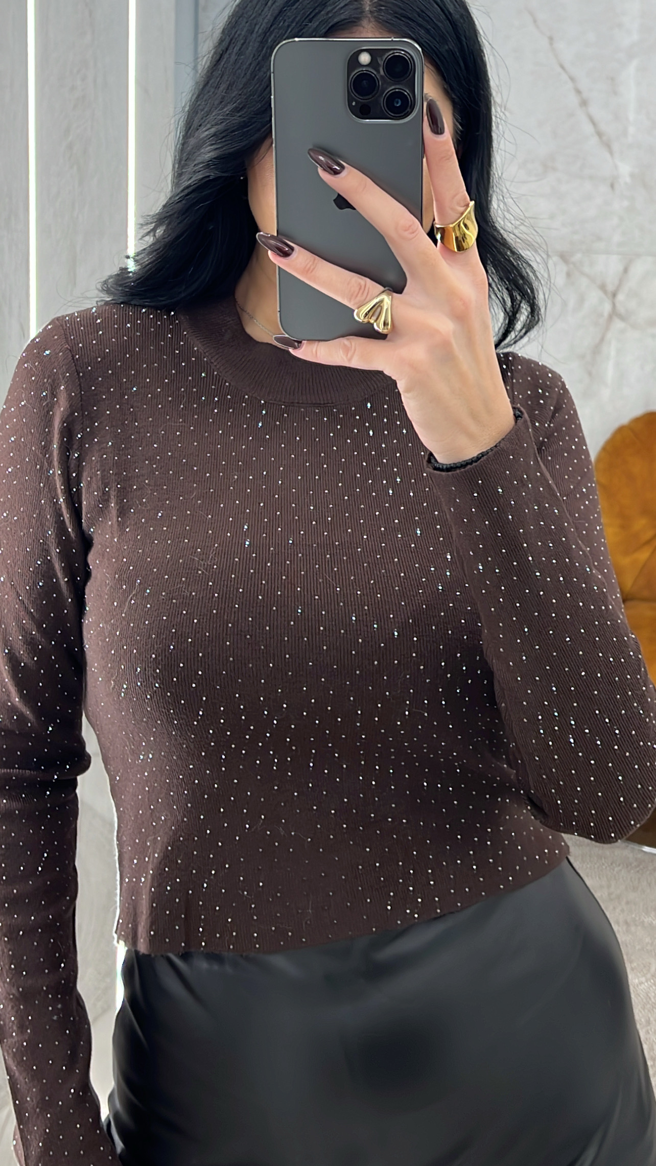 Μπλούζα πλεκτή με στρας 9694/Καφέ