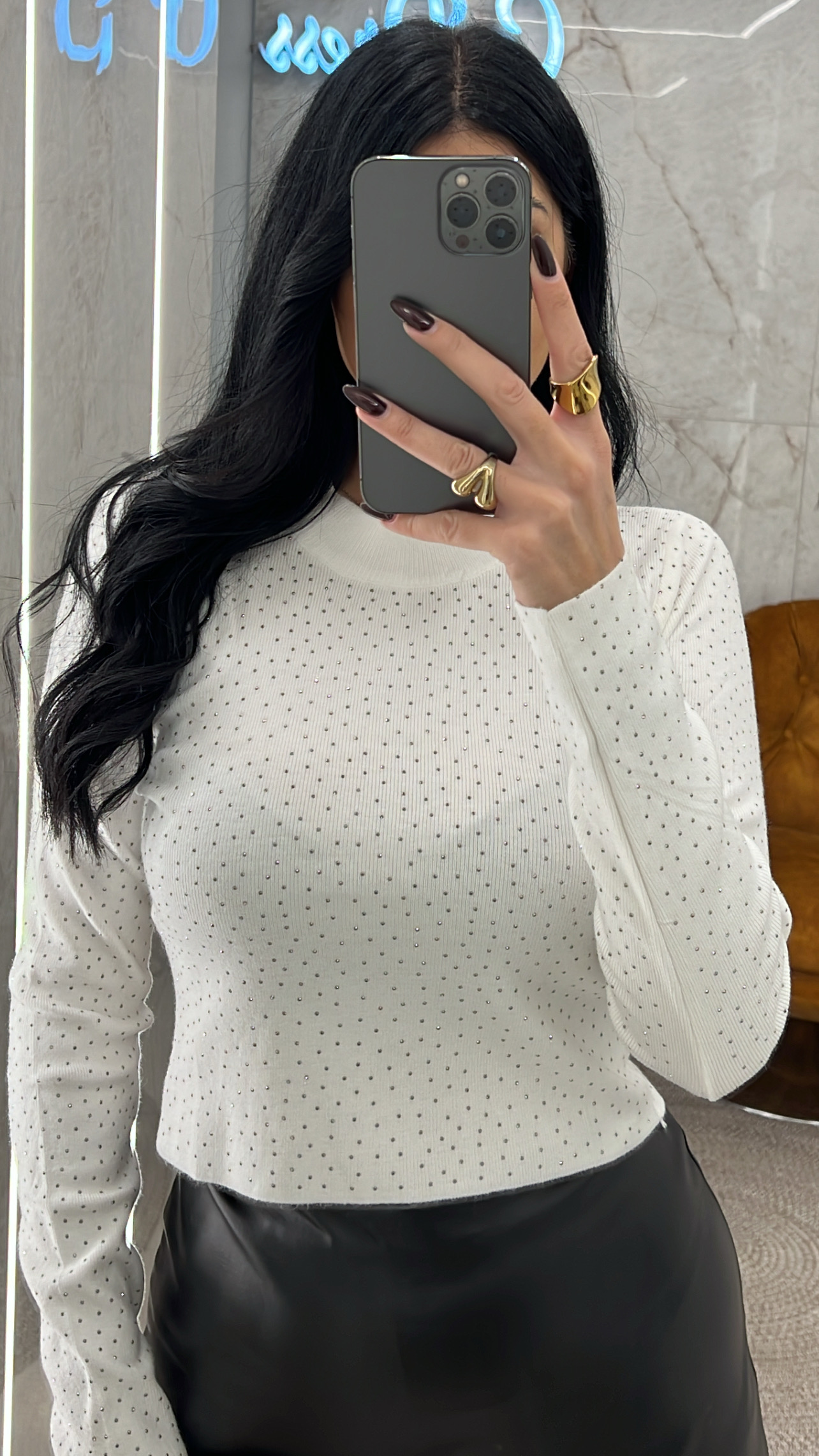 Μπλούζα πλεκτή με στρας 9694/Λευκό