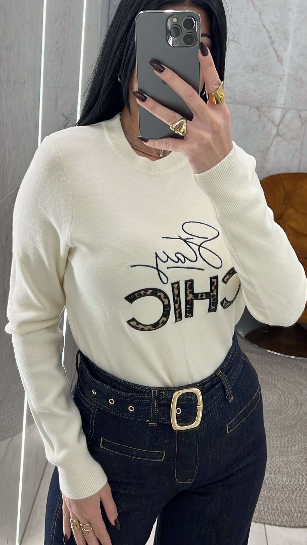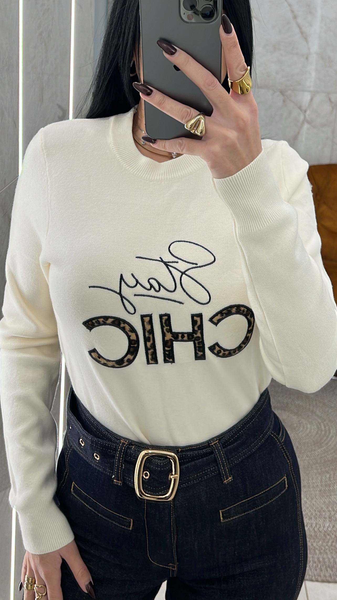 Μπλούζα εκρού πλεκτή με print λεοπάρ