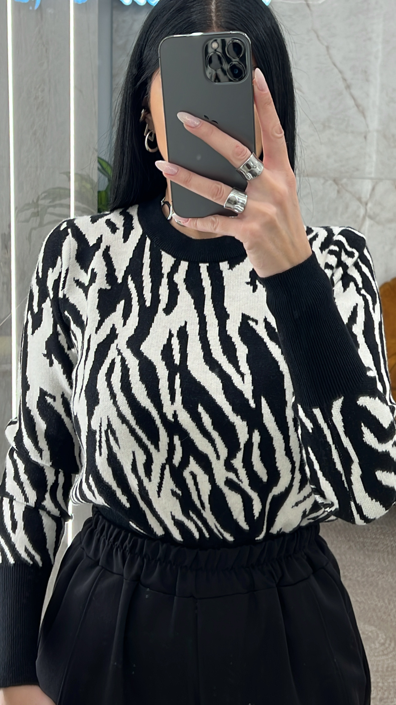 Μπλούζα πλεκτή ζέβρα /λευκό