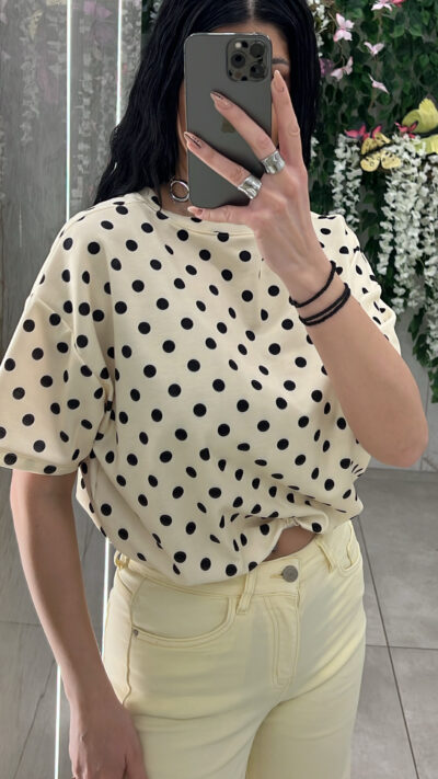 Μπλουζα πουα κοντομάνικι με λάστιχο στο τελειωμα .