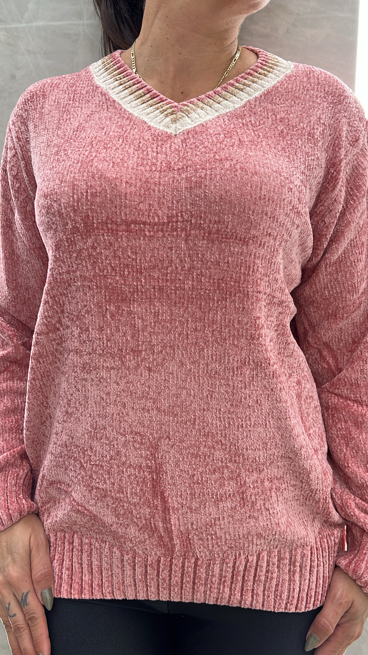 Μπλούζα σενίλ με V στο λαιμό