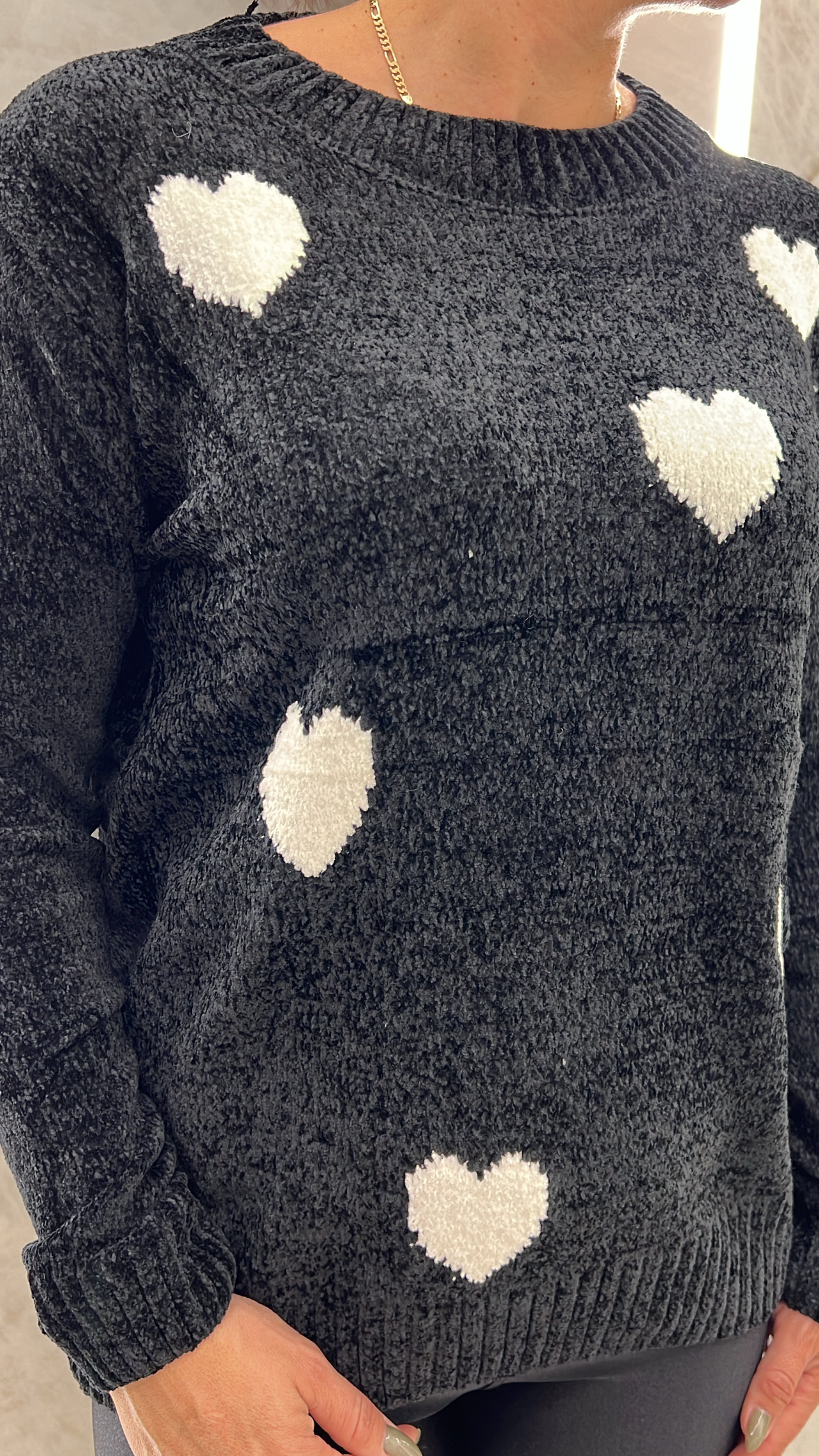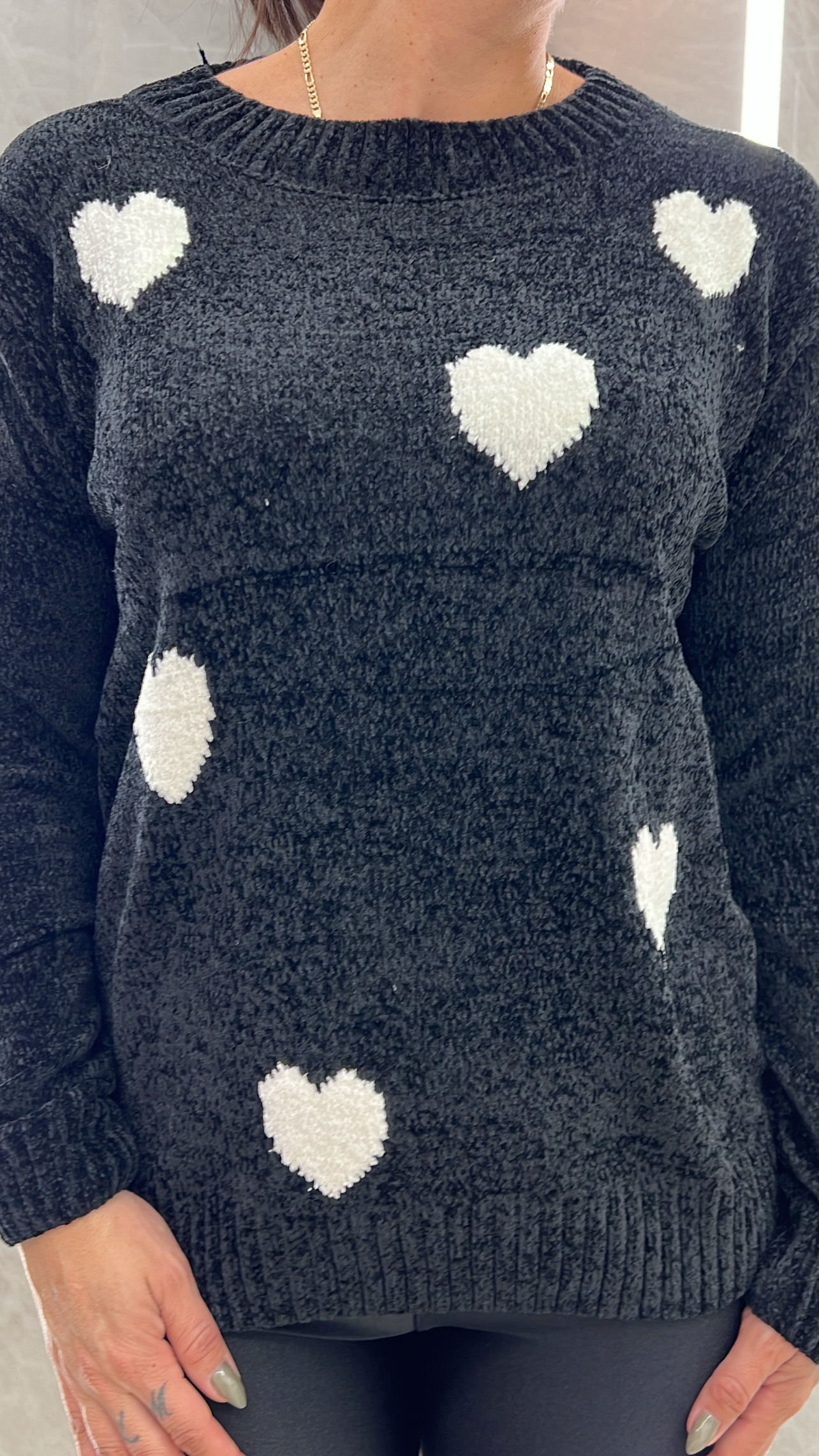 Μπλούζα Σενίλ με Καρδιές 5527/Μαύρο