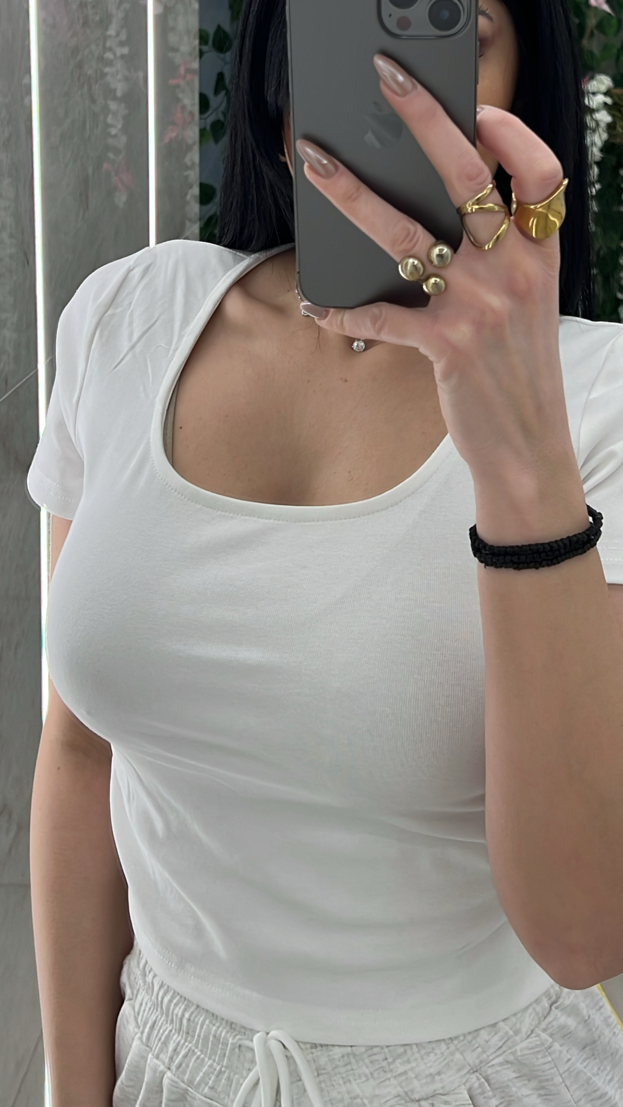 Μπλουζα τοπ κοντομάνικη με σουρα στο πλαι .