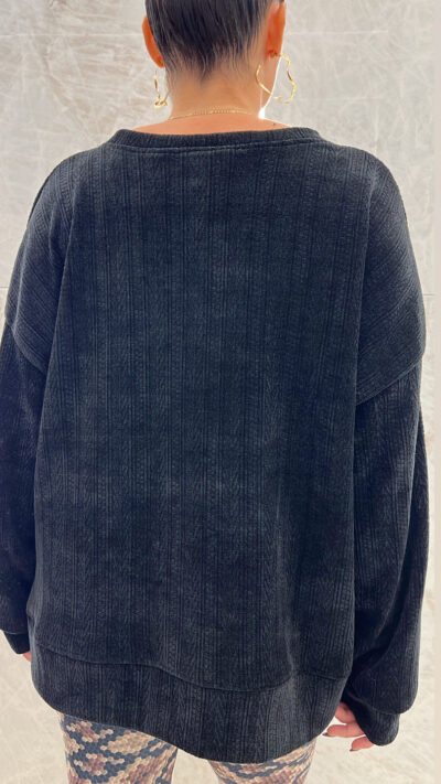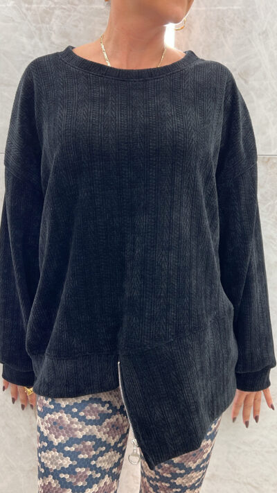 Μπλούζα βελουτέ με λεπτομέρειες φερμουάρ 25931/Μαύρο