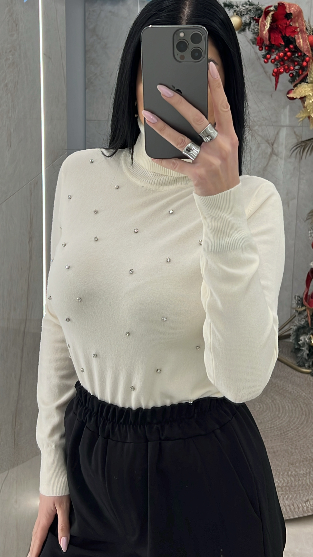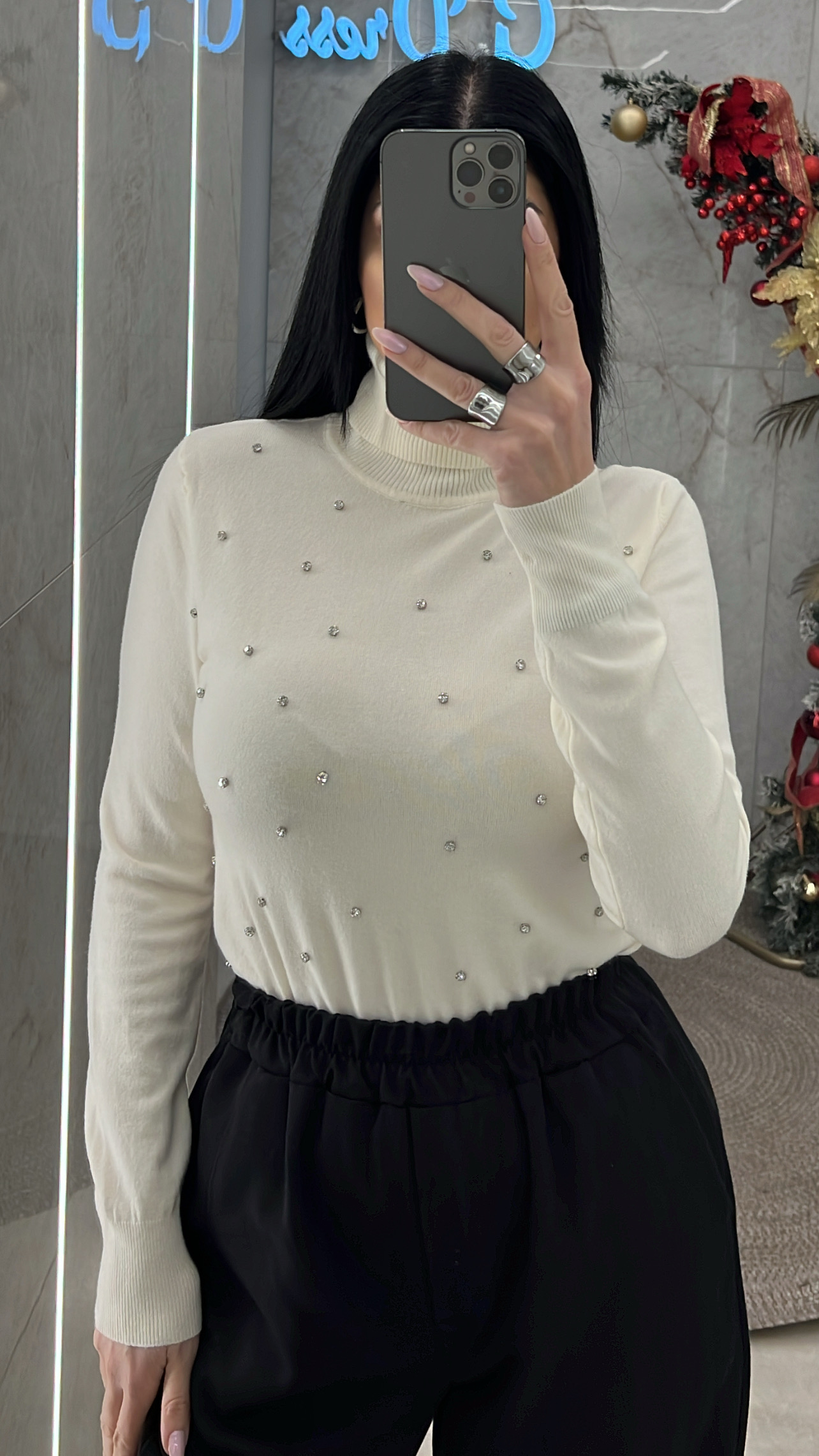 Μπλούζα Ζιβάγκο με Στράς 505/Εκρού