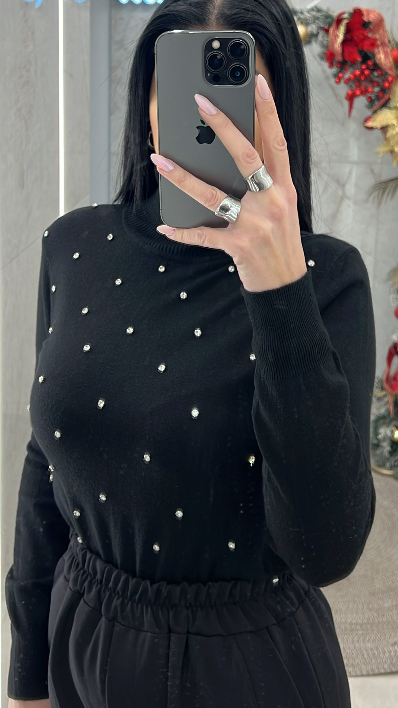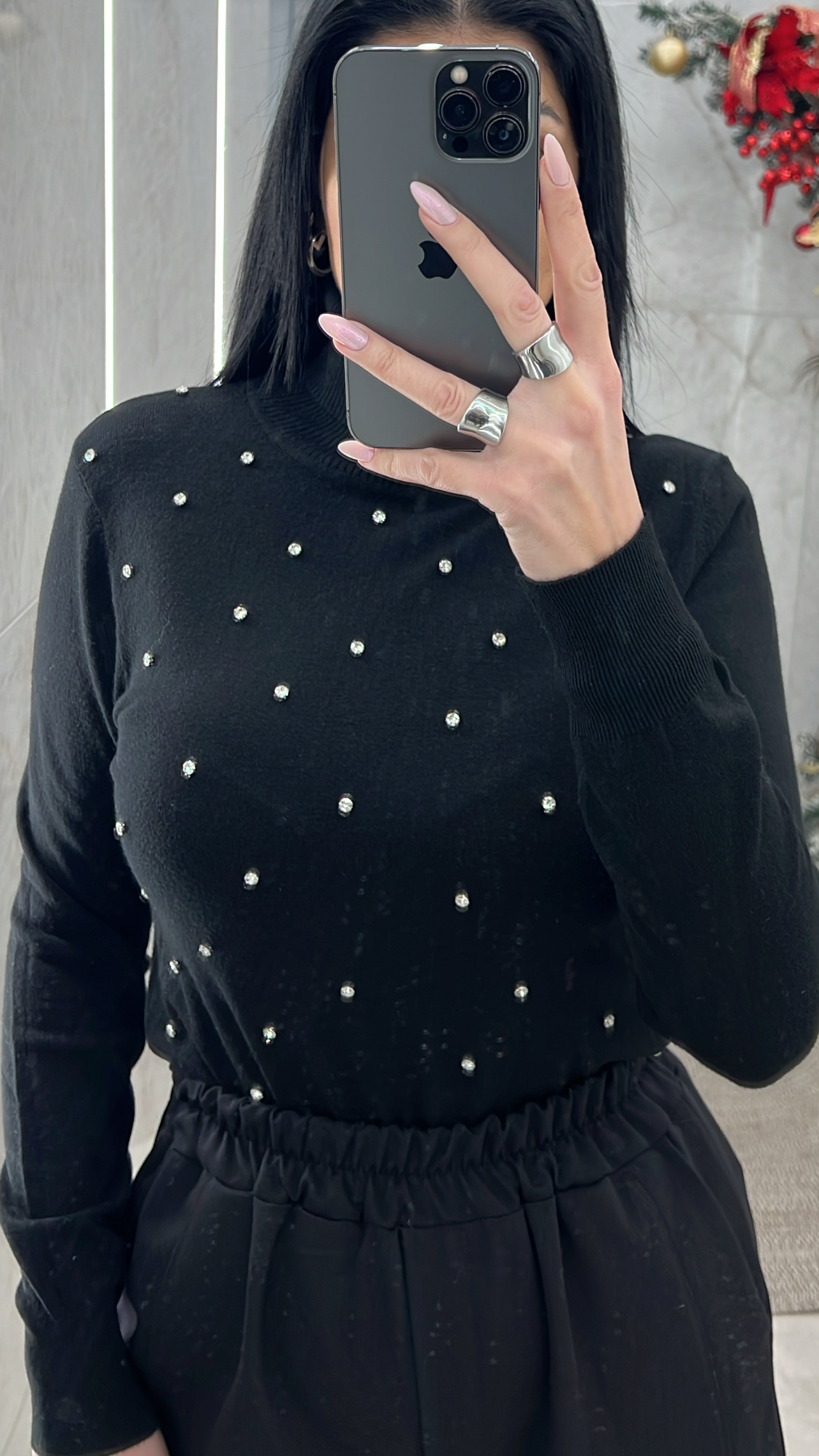 Μπλούζα πλεκτή με strass 5312/Μαύρη
