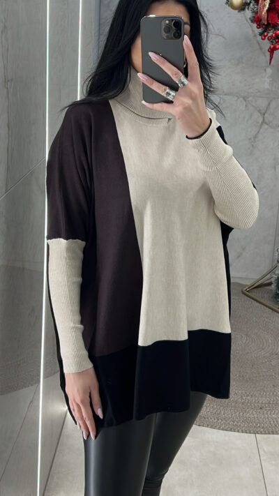 Μπλούζα Ζιβάγκο Oversized JK8521/Καφέ-Μαύρο