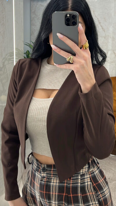 Mohair Ζακέτα με Καρφίτσα/Καφέ