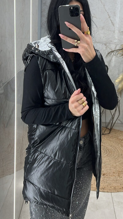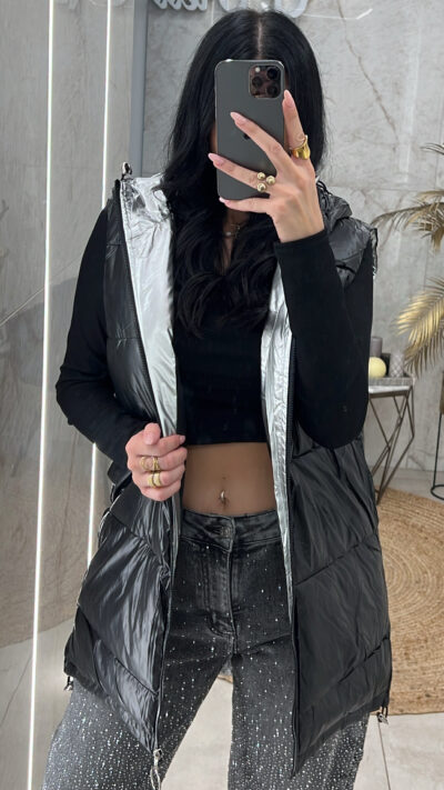 Μπουφάν Αμάνικο Μεταλιζέ/Μαύρο