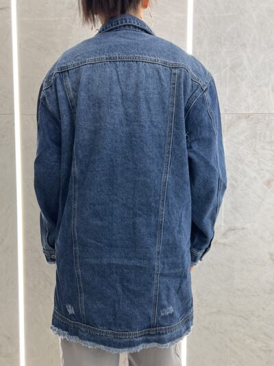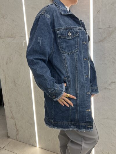 Μπουφάν τζίν oversized , κλείνει με κουμπιά ,εχει ξέφτια στο τελείωμα και  έχει τσέπες .