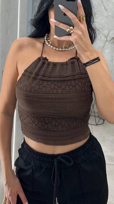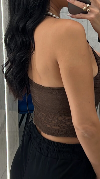 Crop Top Δαντέλα/Καφέ
