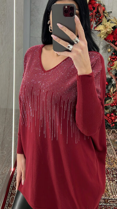 Μπλούζα Πλεκτή με στρας ZS5292/Κόκκινο