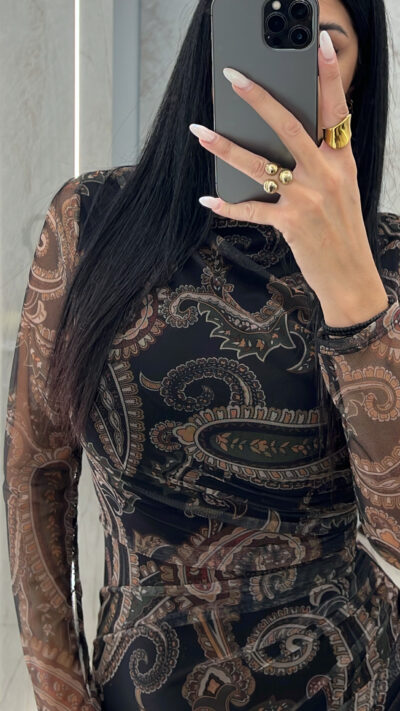 Midi Φόρεμα Λαχούρι/Μαύρο