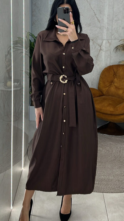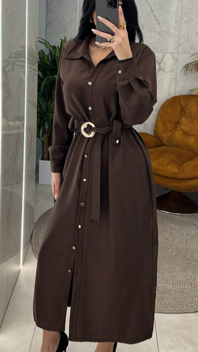 Midi Φόρεμα με Κουμπιά/Καφέ