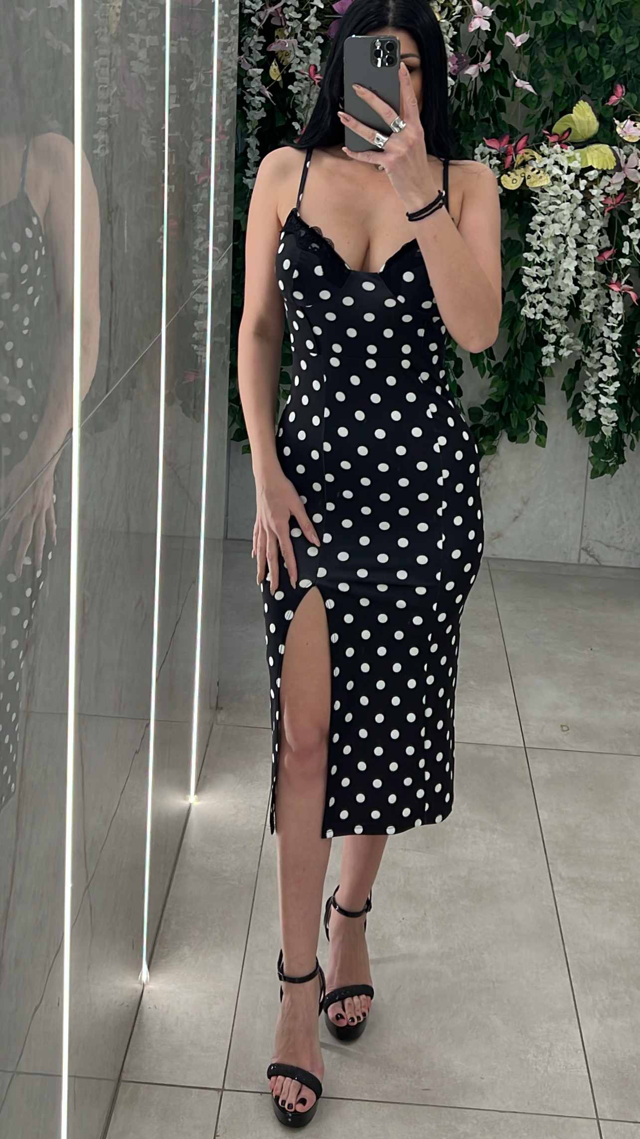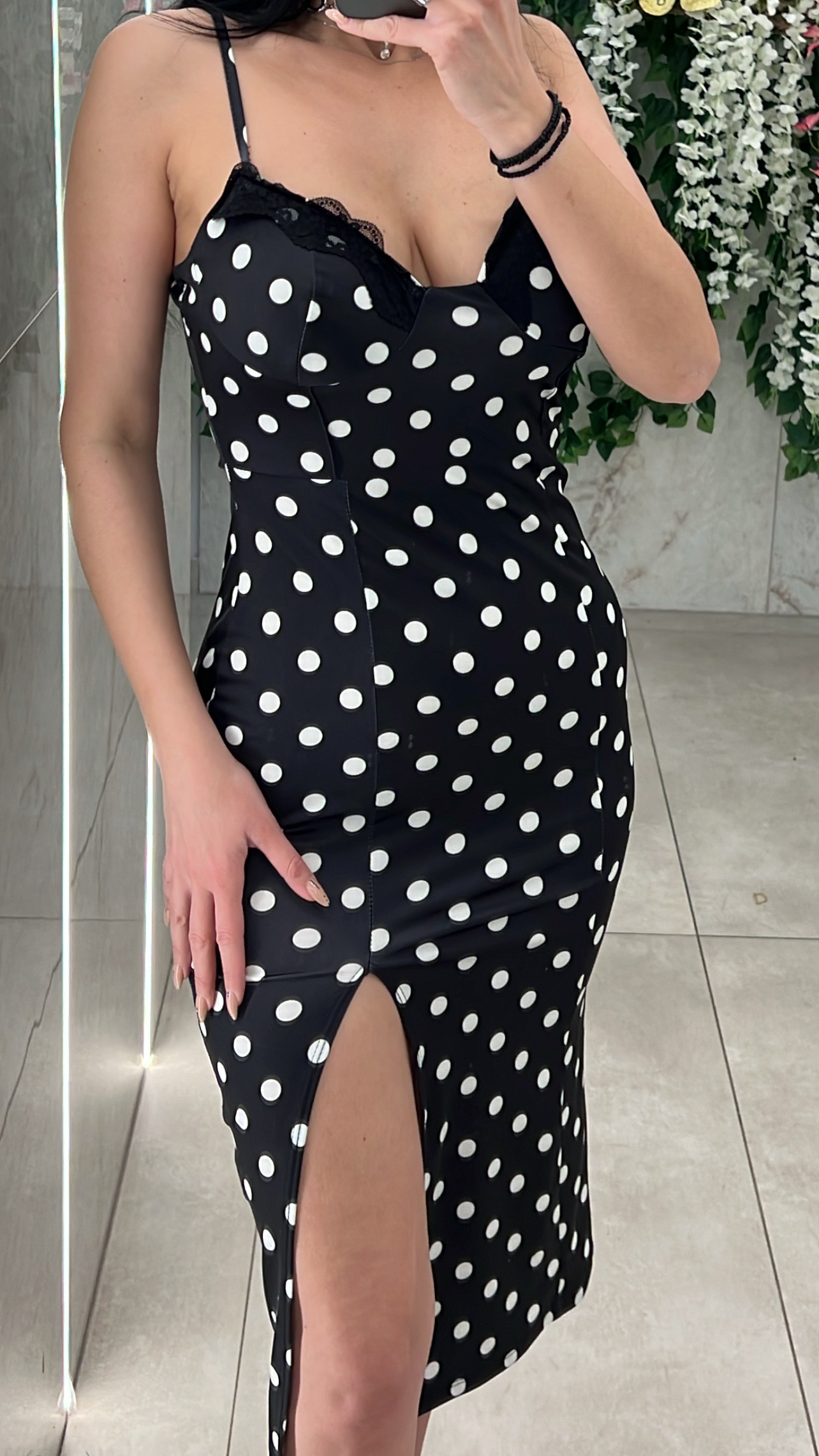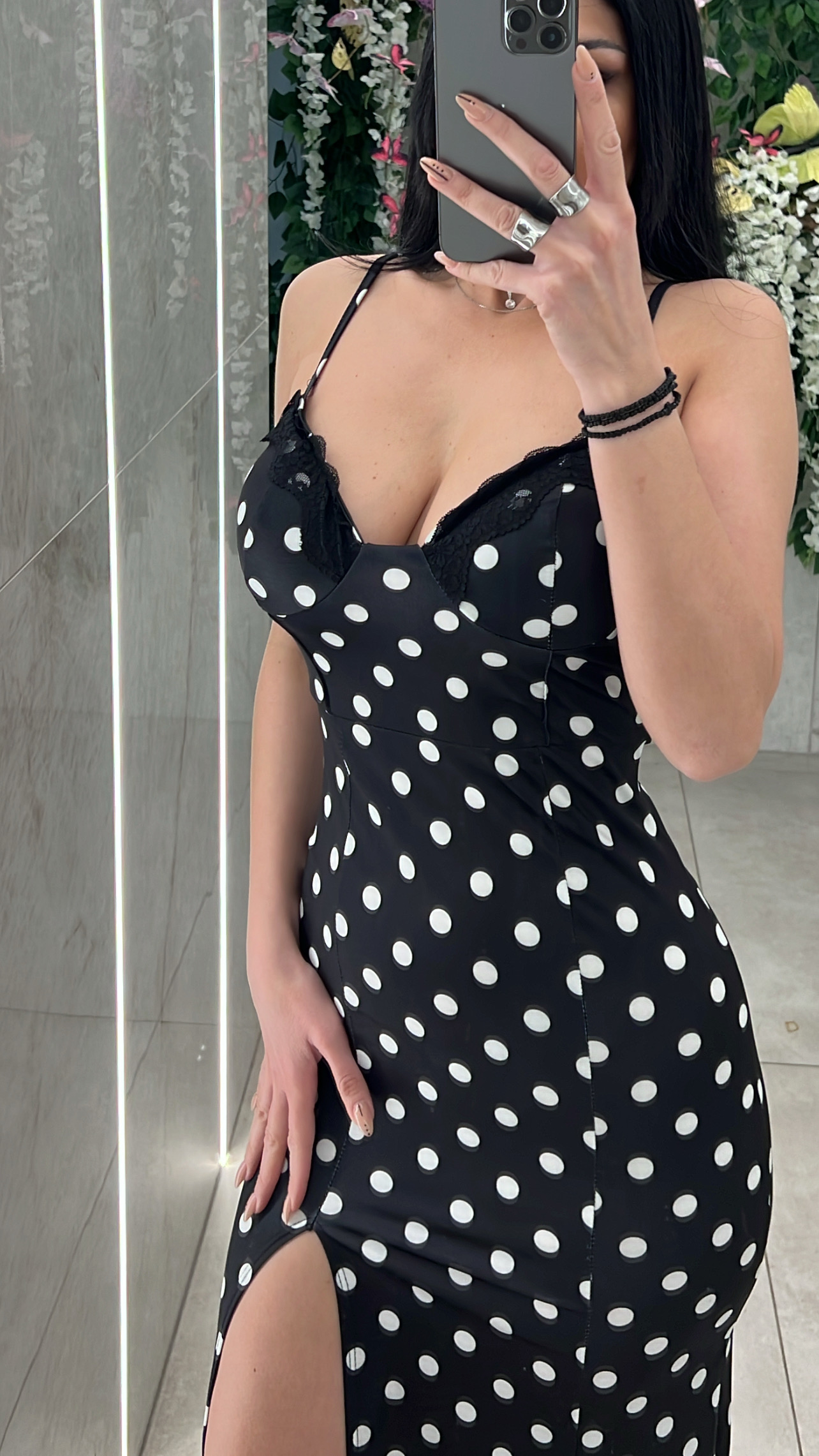 Φόρεμα πουα με σκισιμο στο πόδι ,λεπτομέρεια δαντελας και καπς στο στηθος .