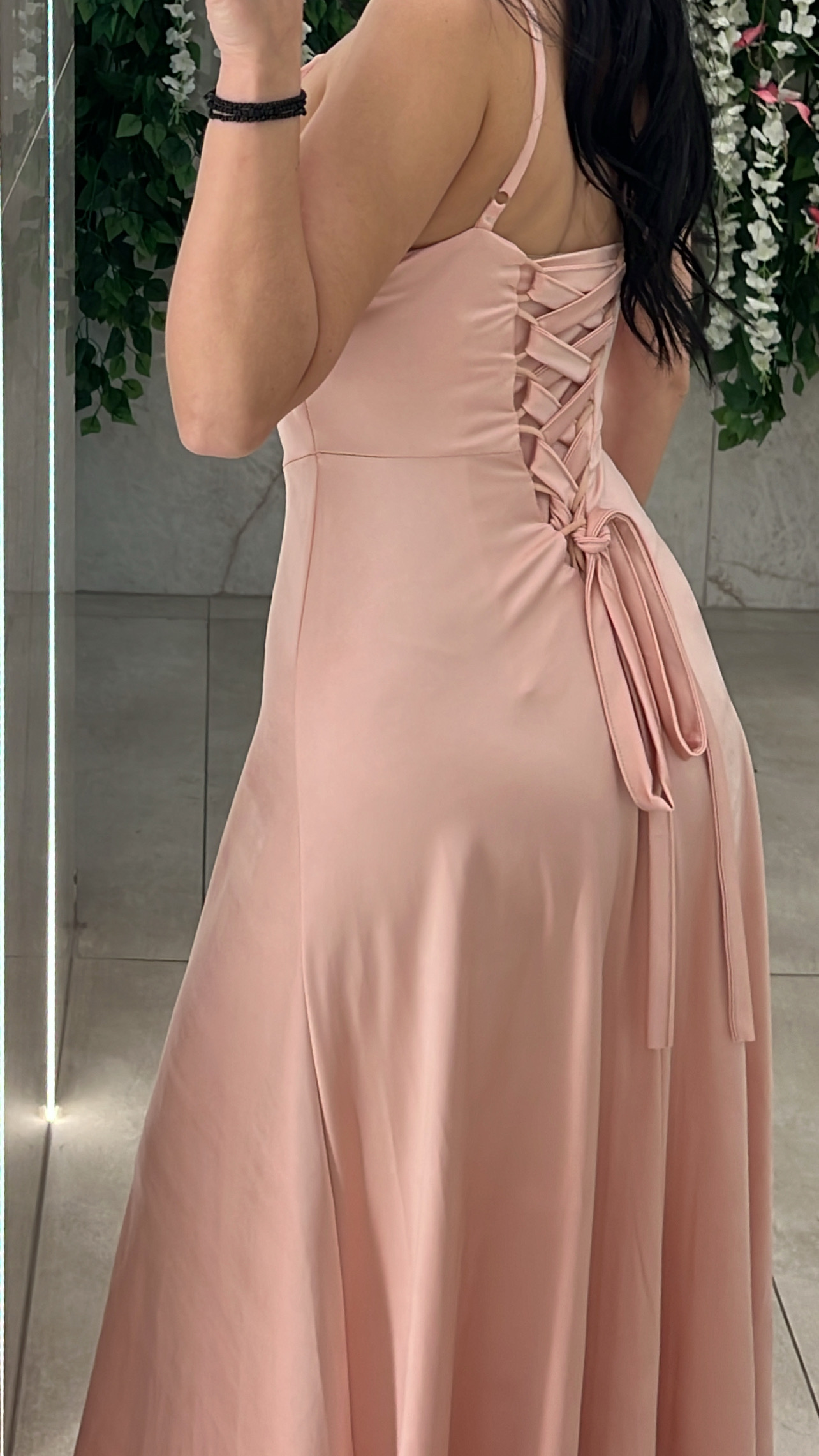 Φόρεμα μακρυ με σκισιμο στο ποδι , καπς στο στηθος και ρυθμιζόμενες τιραντες .