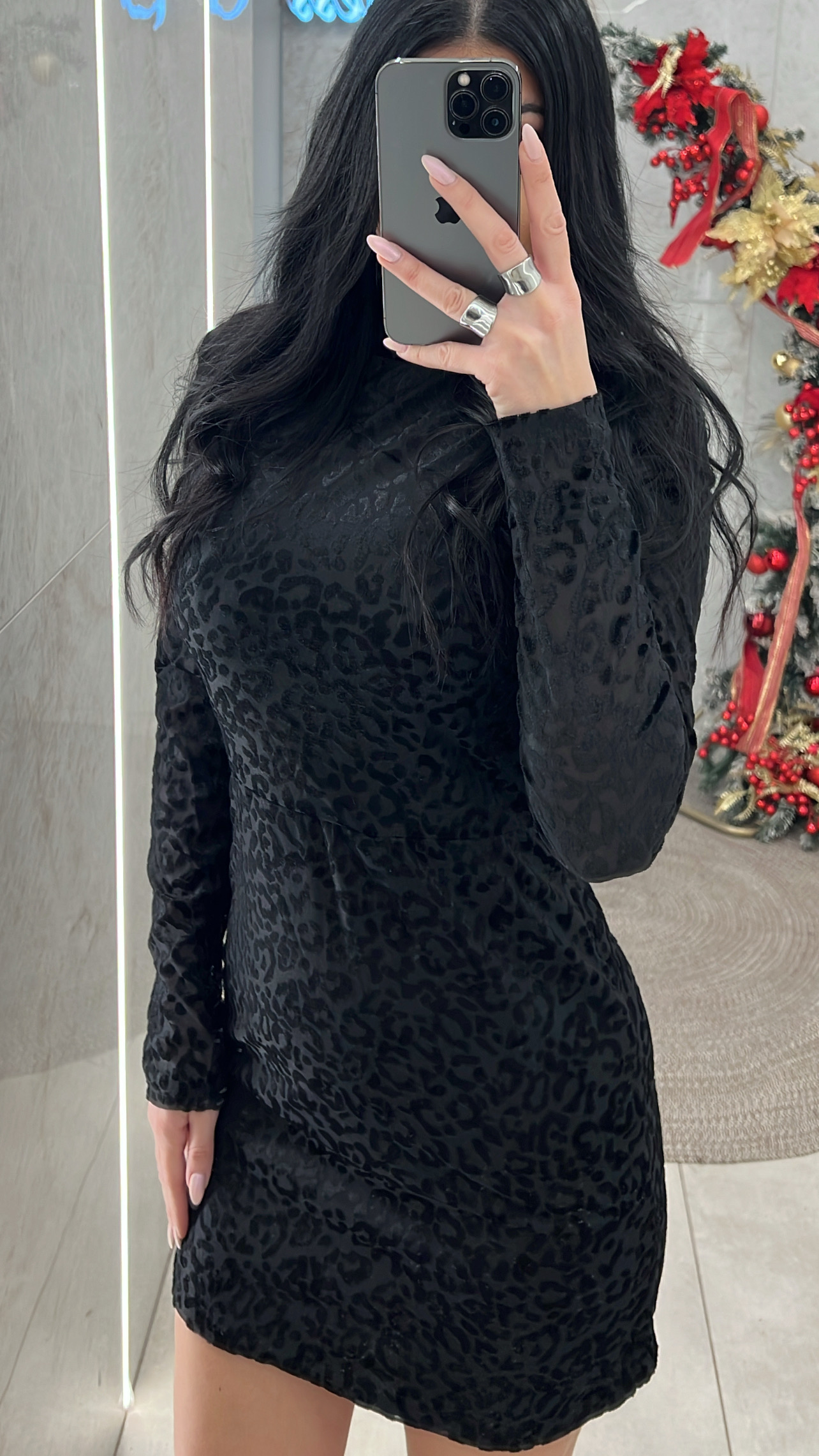 Φόρεμα animal βελουτέ με διαφάνεια στα μανίκια και κλείνει με φερμουάρ στο πίσω μέρος