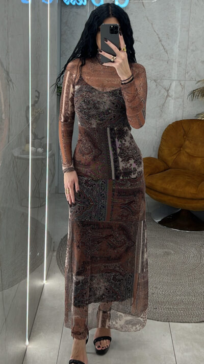 Φόρεμα Διάφανο Maxi 12603/Καφέ