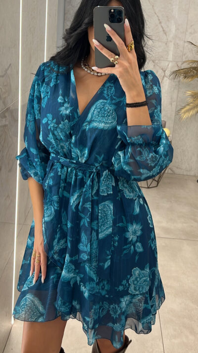 Mini Φόρεμα με Χιαστί/Πετρόλ