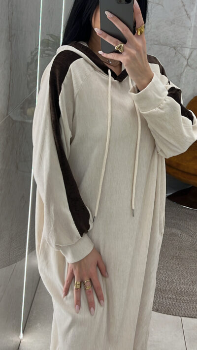 Φόρεμα oversized με κουκούλα 25282/Μπεζ