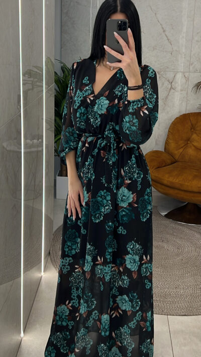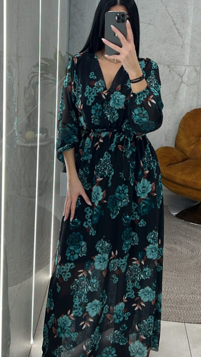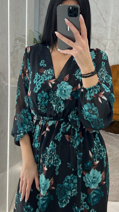Φόρεμα floral με λάστιχο στην μέση και στα μανίκια και φόδρα εσωτερικά