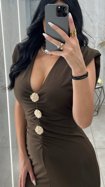 Midi Φόρεμα με Κουμπιά/Καφέ