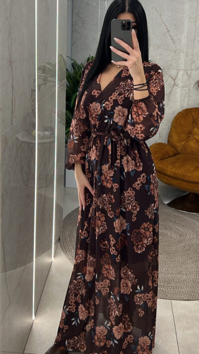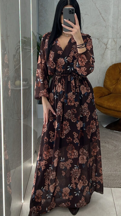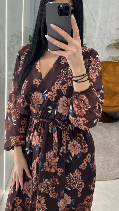 Φόρεμα floral με λάστιχο στην μέση και στα μανίκια και φόδρα εσωτερικά