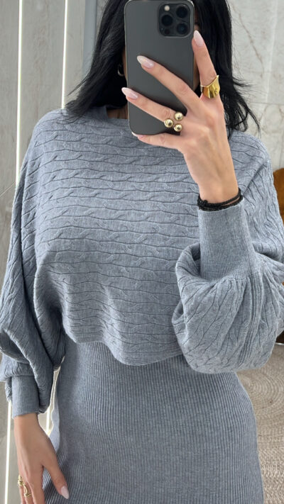 Φόρεμα Πλεκτό με Μπλούζα 595432/Γκρι