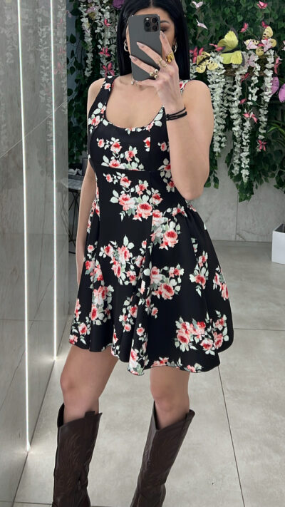 Φόρεμα Φλοραλ 32983/ Μαυρο