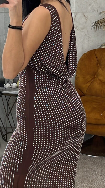 Φόρεμα Μακρύ με Στρας ΥΤ2515/Καφέ