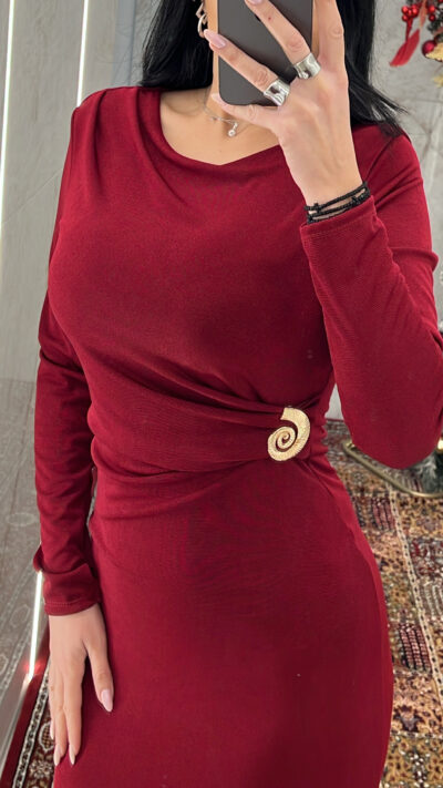 Φόρεμα μακρύ με αγκράφα 38990/Μπορντώ