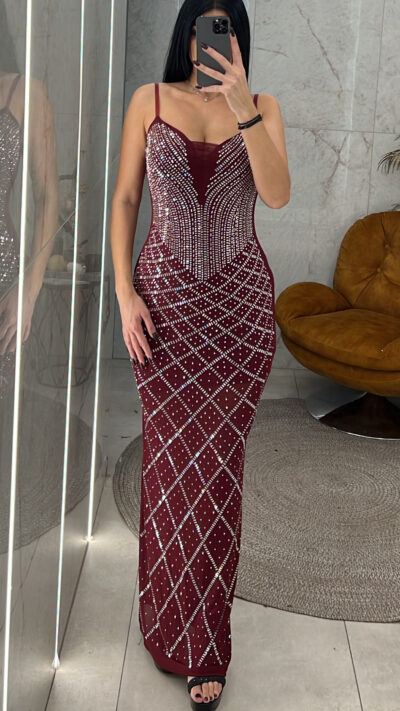 Φόρεμα Μάξι με Στρας ΥΤ2514/Μπορντώ