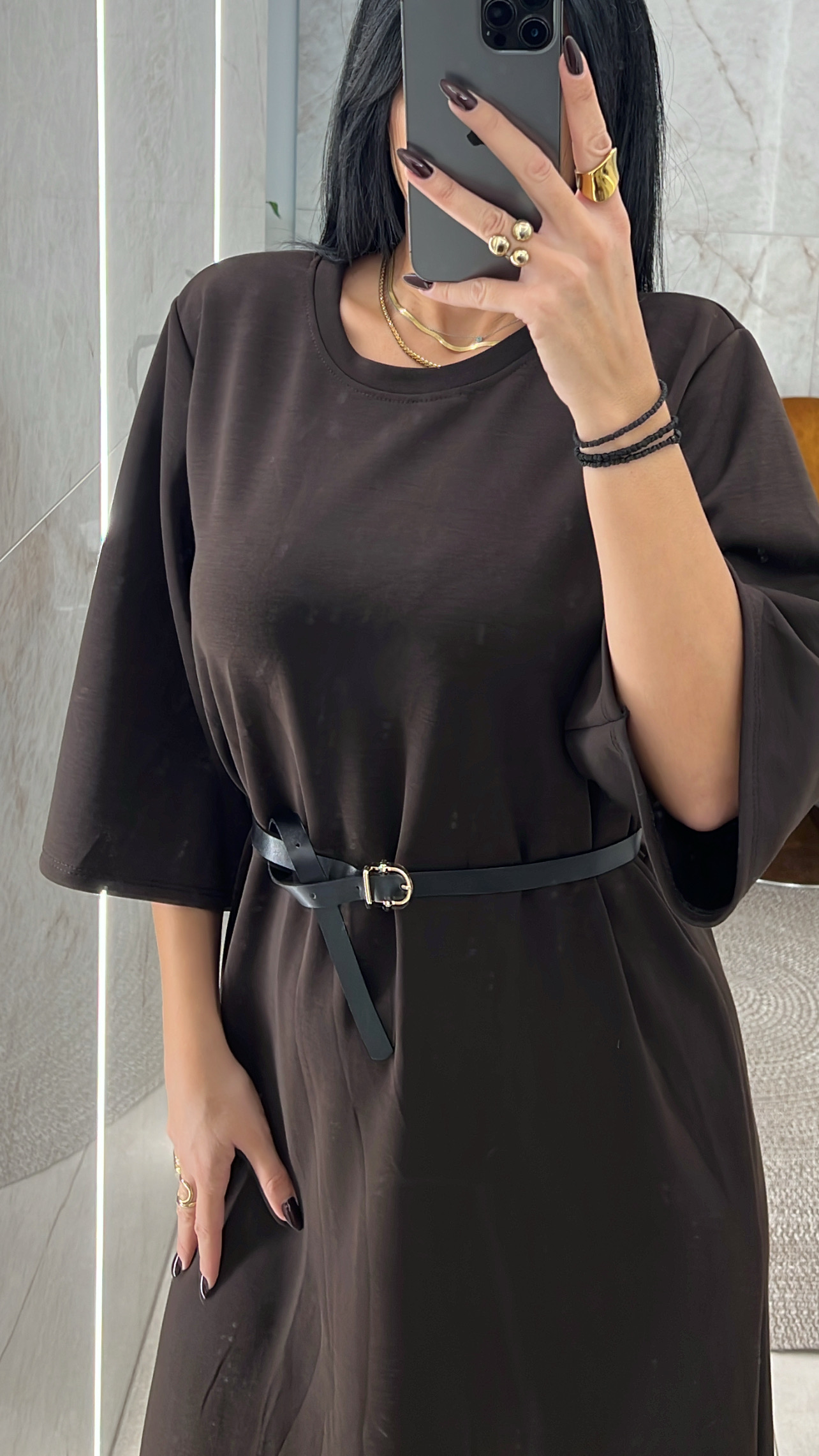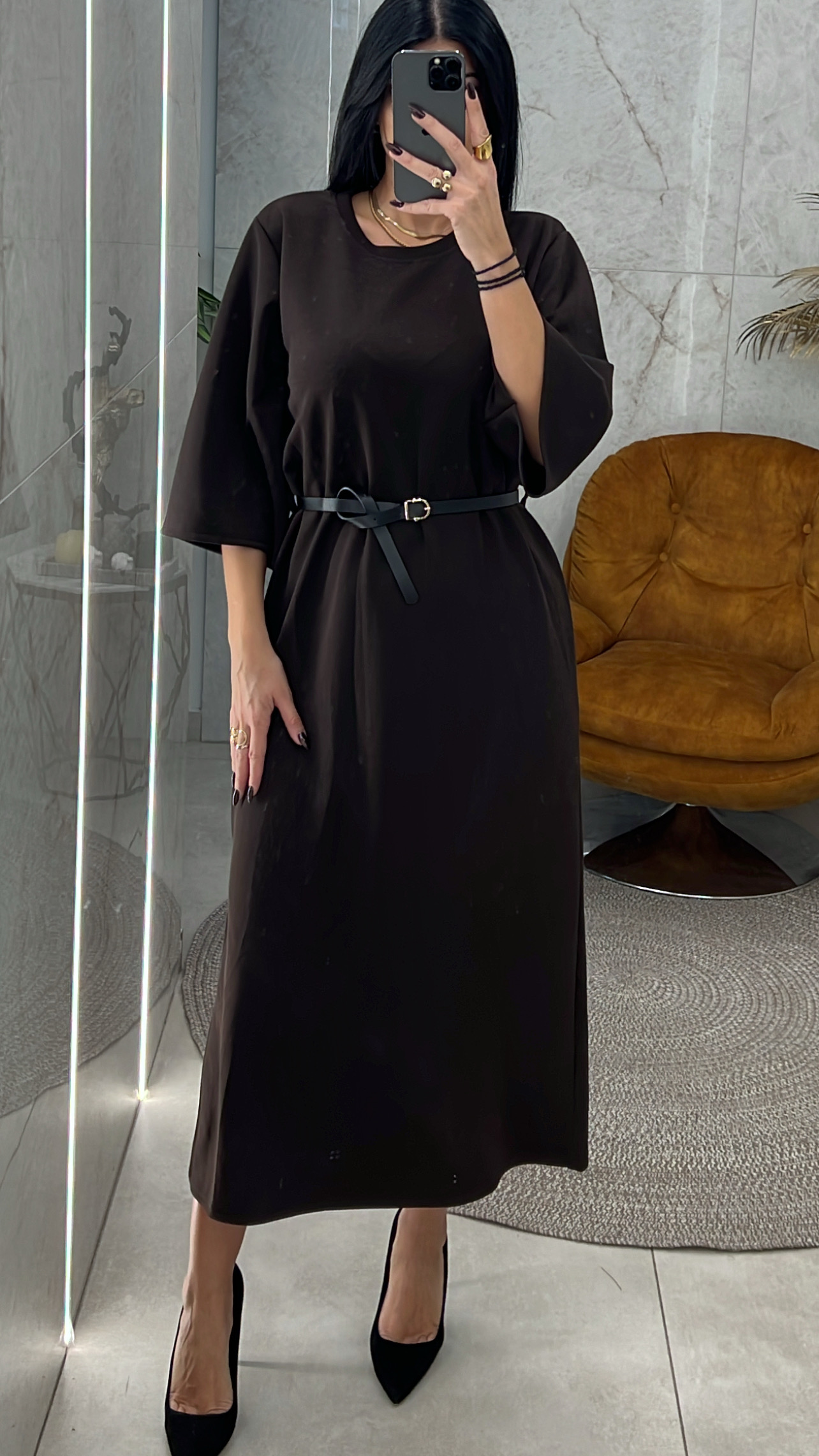 Φόρεμα Maxi με Ζωνάκι/Καφέ