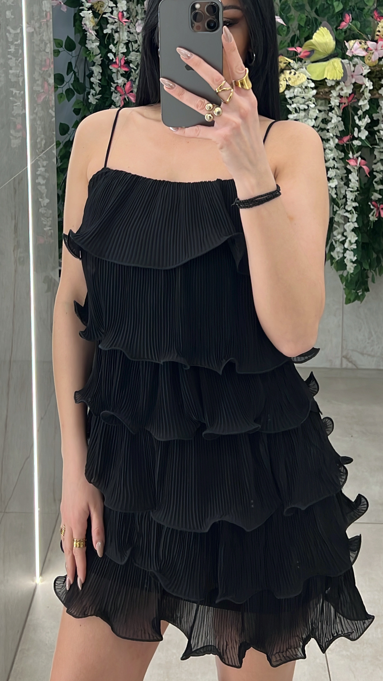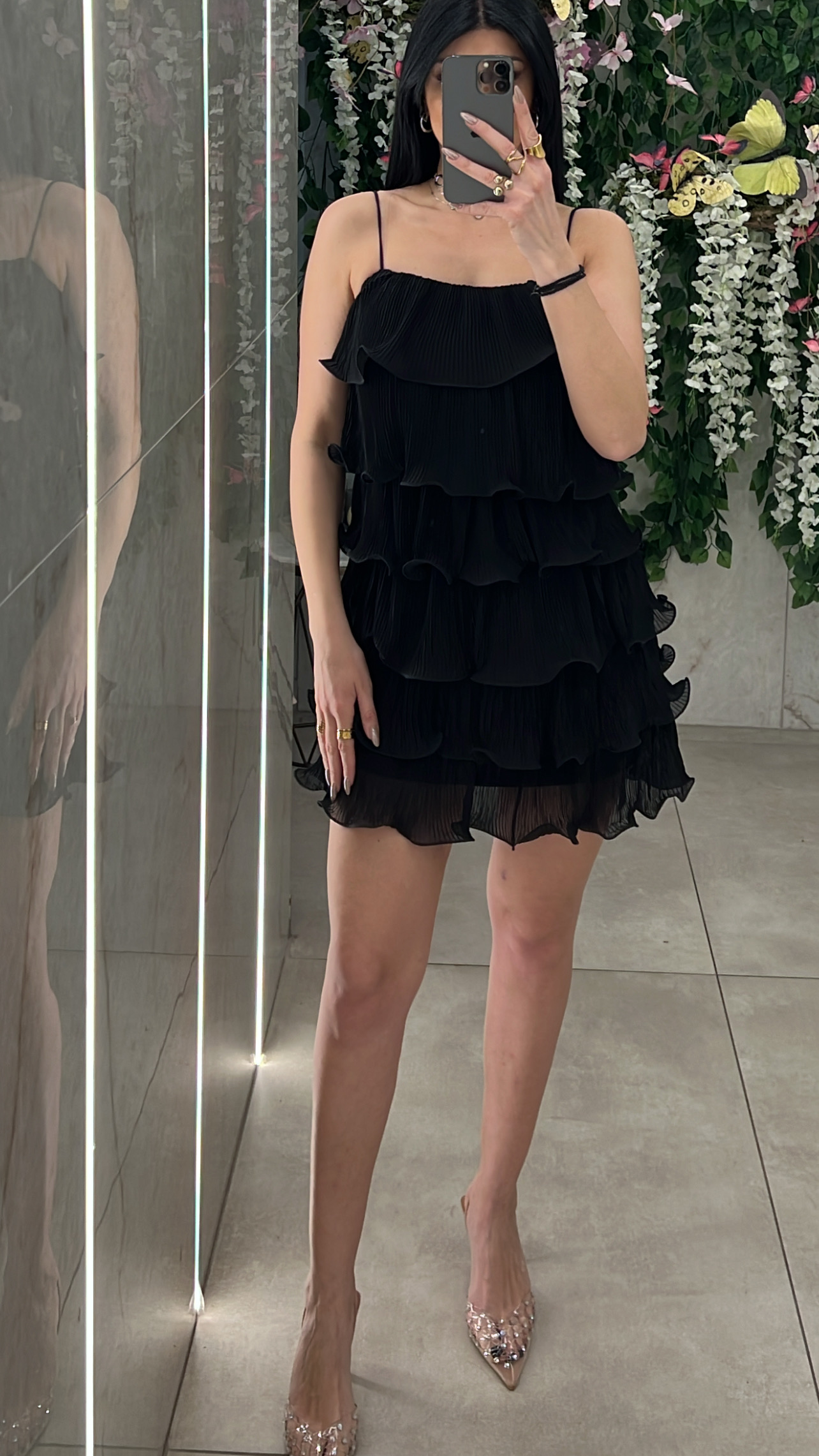 Φόρεμα κοντό με βολάν και λεπτες τιράντες .