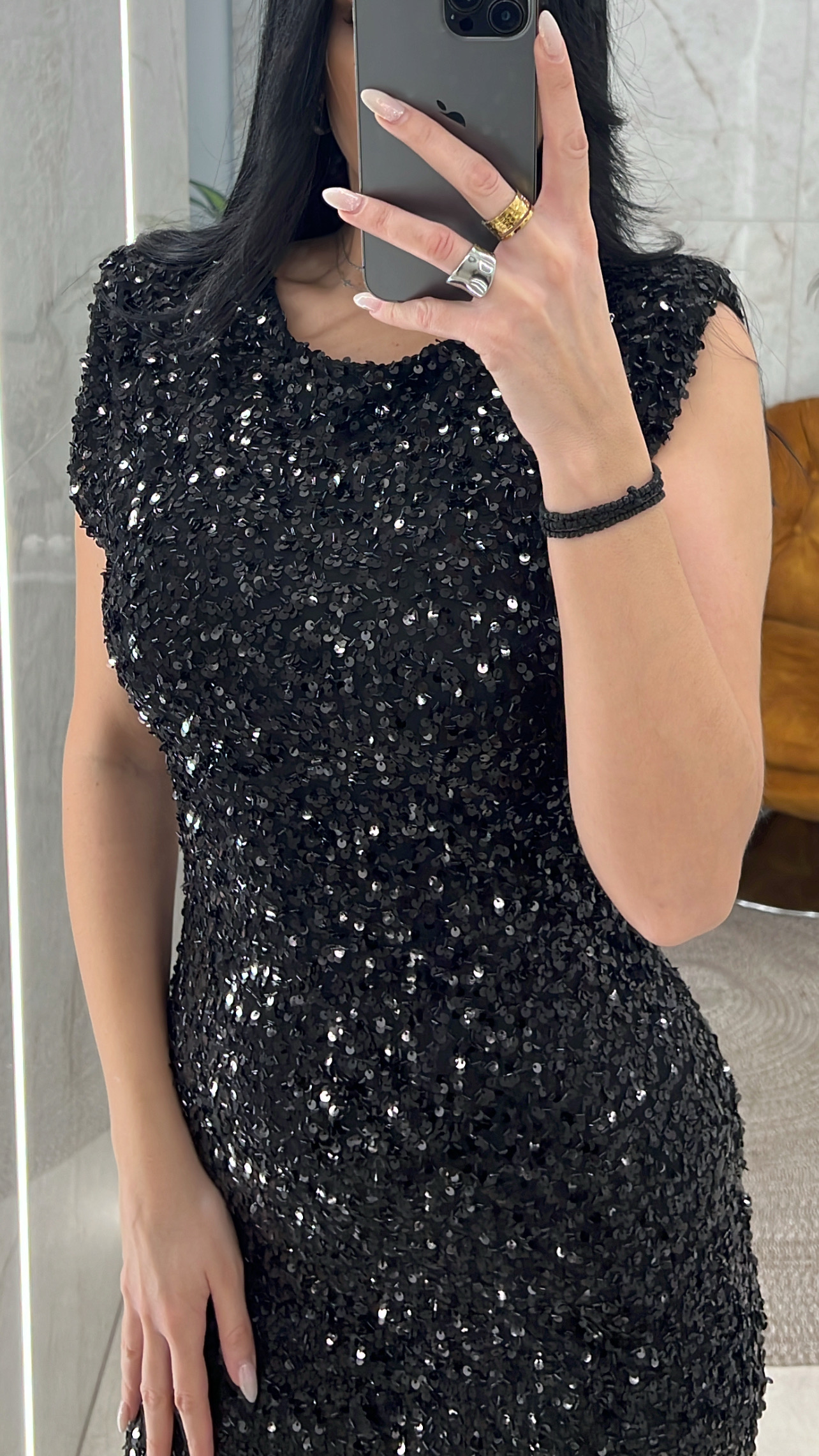 Φόρεμα mini με Παγιέτες 6327 Μαύρο/ 6327