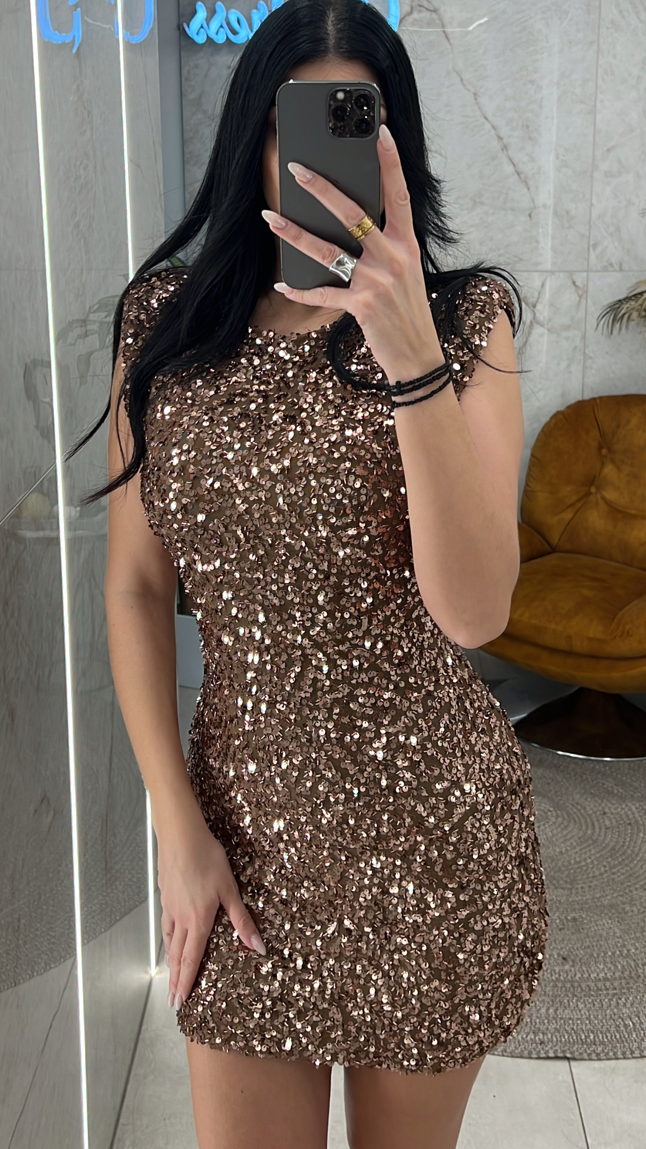 Φόρεμα mini με Παγιέτες Καφέ/ 6327