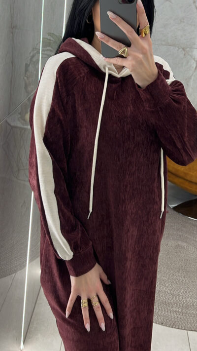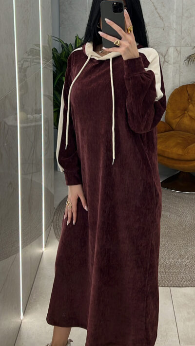 Φόρεμα oversized με κουκούλα 25282/Μπορντό