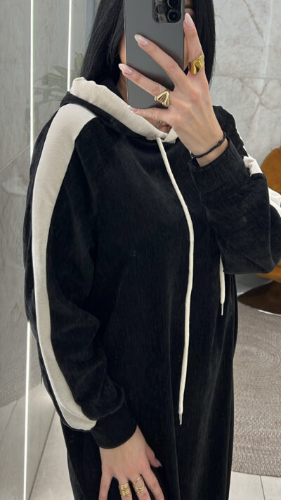 Φόρεμα oversized με κουκούλα 25282/Μαύρο