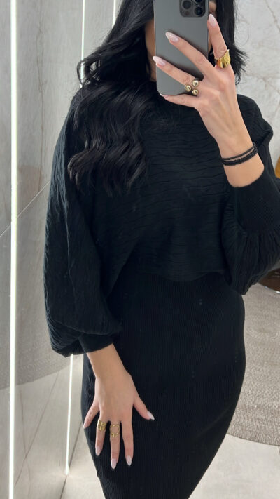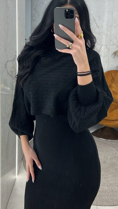 Φόρεμα Πλεκτό με Μπλούζα 595432/Μαύρο