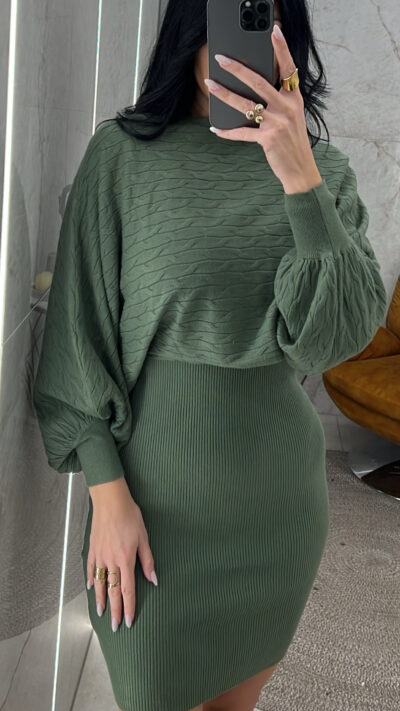 Φόρεμα Πλεκτό με Μπλούζα 595432/Πράσινο