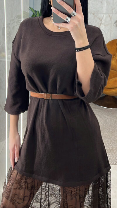 Φόρεμα Πλεκτό με Δαντέλα 4803/Καφέ