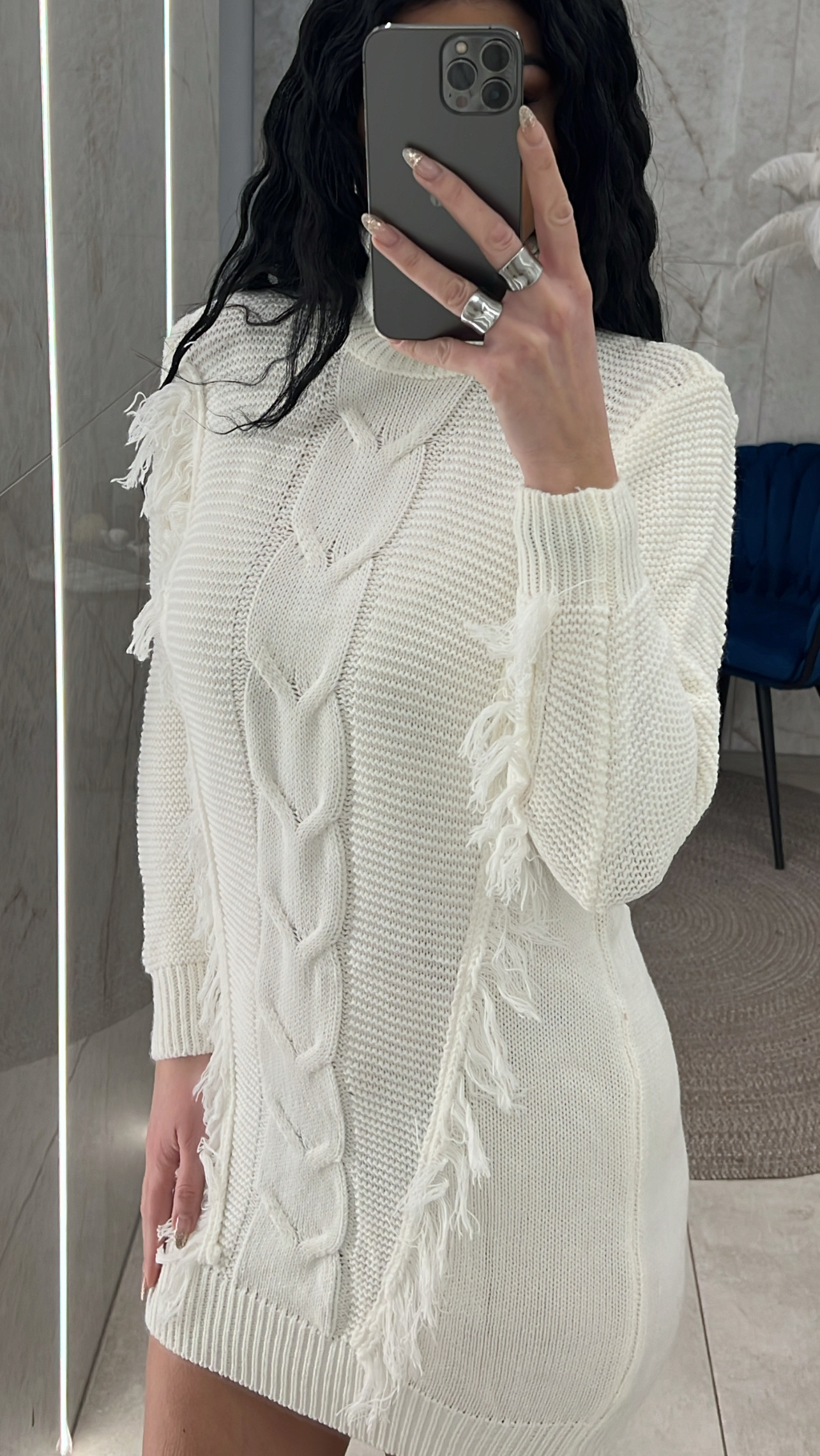 Φόρεμα πλεκτό με κρόσια 80548/Λευκό