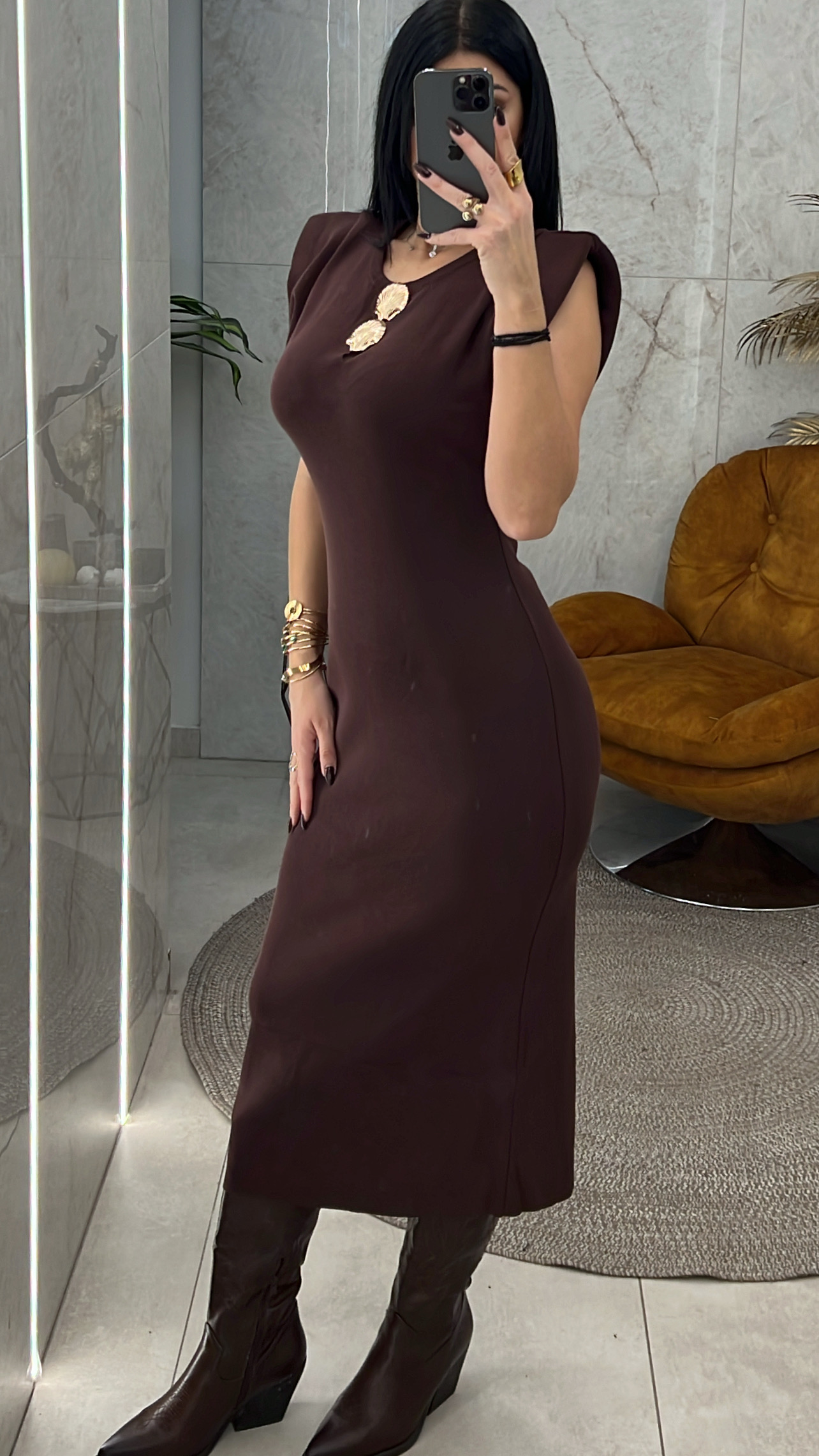 Φόρεμα Πλεκτό Midi 0552/Καφέ