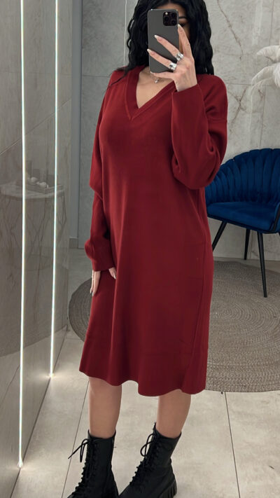 Φόρεμα πλεκτό oversized MO345/Μπορντό
