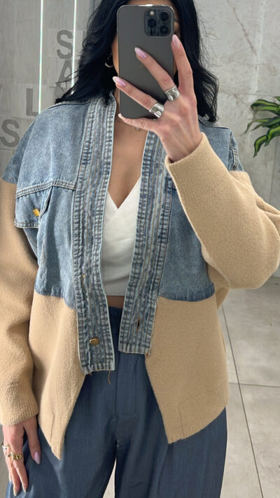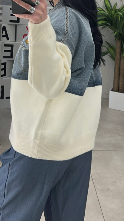 Oversized Τζάκετ Τζίν Με Πλεκτό 6022/ Μαυρό